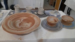 Great two-tone clay bowls created in today’s intermediate wheel class. These were created with a mixture of terracotta and white clay. We offer several classes…