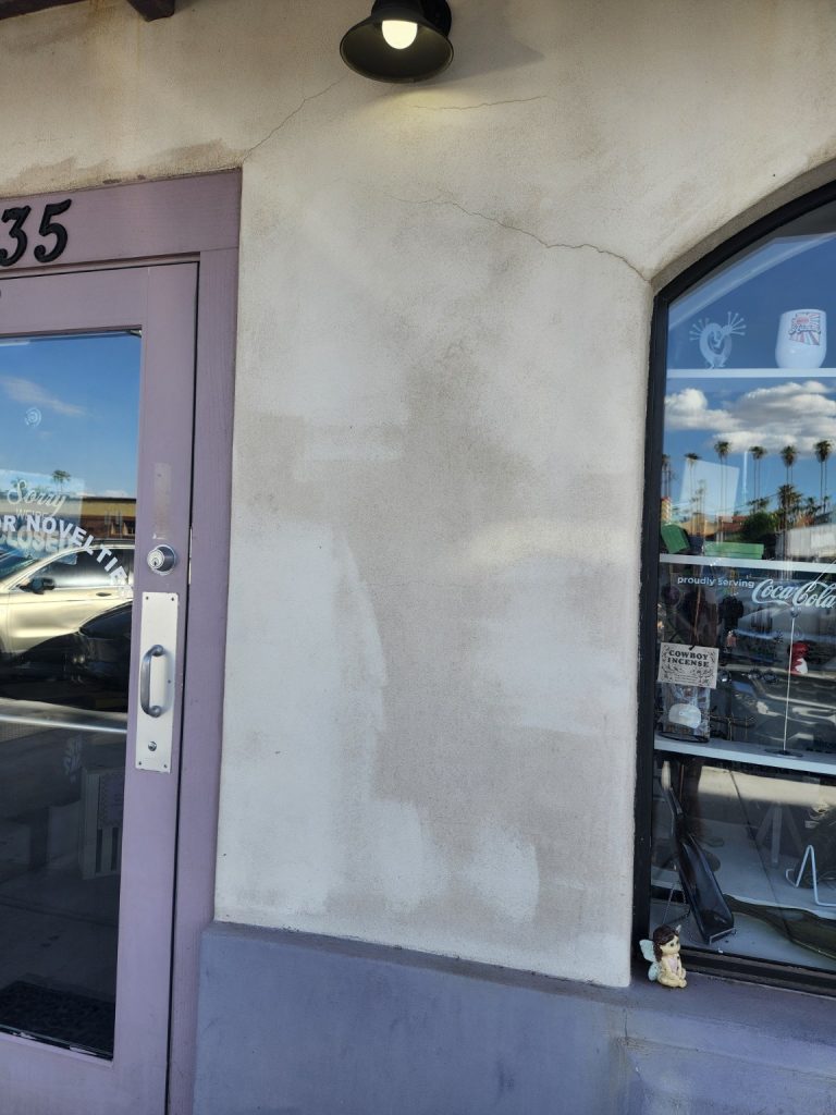 After 11 years of Arizona sun, the paint had become uneven and splotchy in places—especially around the arches and doors—making it clear that the building was ready for some care.