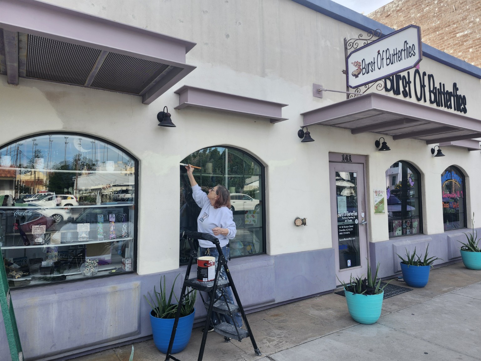 This week, the front of our Burst of Butterflies Create & Paint Studio in downtown Chandler got a fresh new look—and it came straight from the heart.