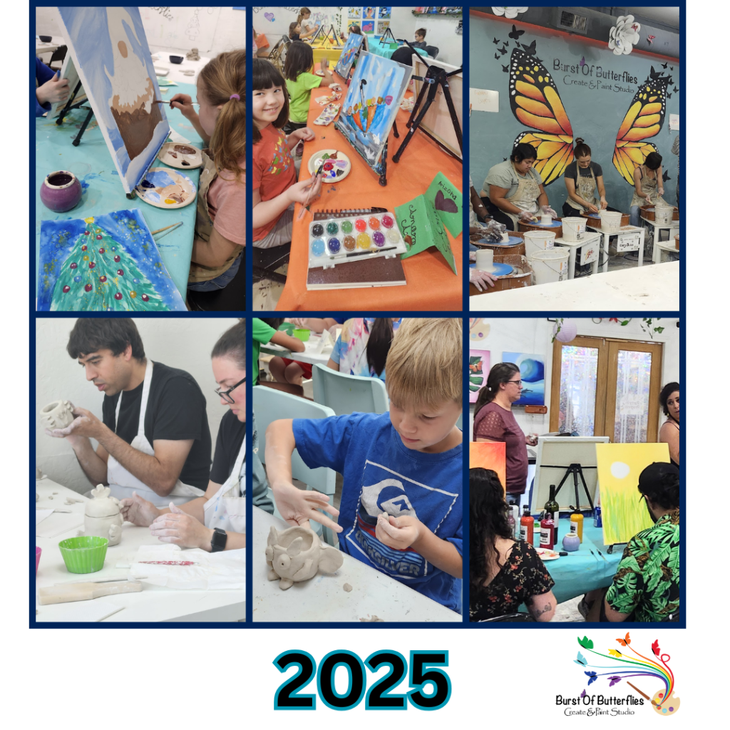 At Burst of Butterflies, we witnessed countless meaningful moments this year — families creating together, kids discovering confidence through art, friends gathering for paint nights, couples laughing at the wheel, and community partnerships that reminded us why this work matters. Each brushstroke, each piece of clay, and each shared smile told a story of connection.