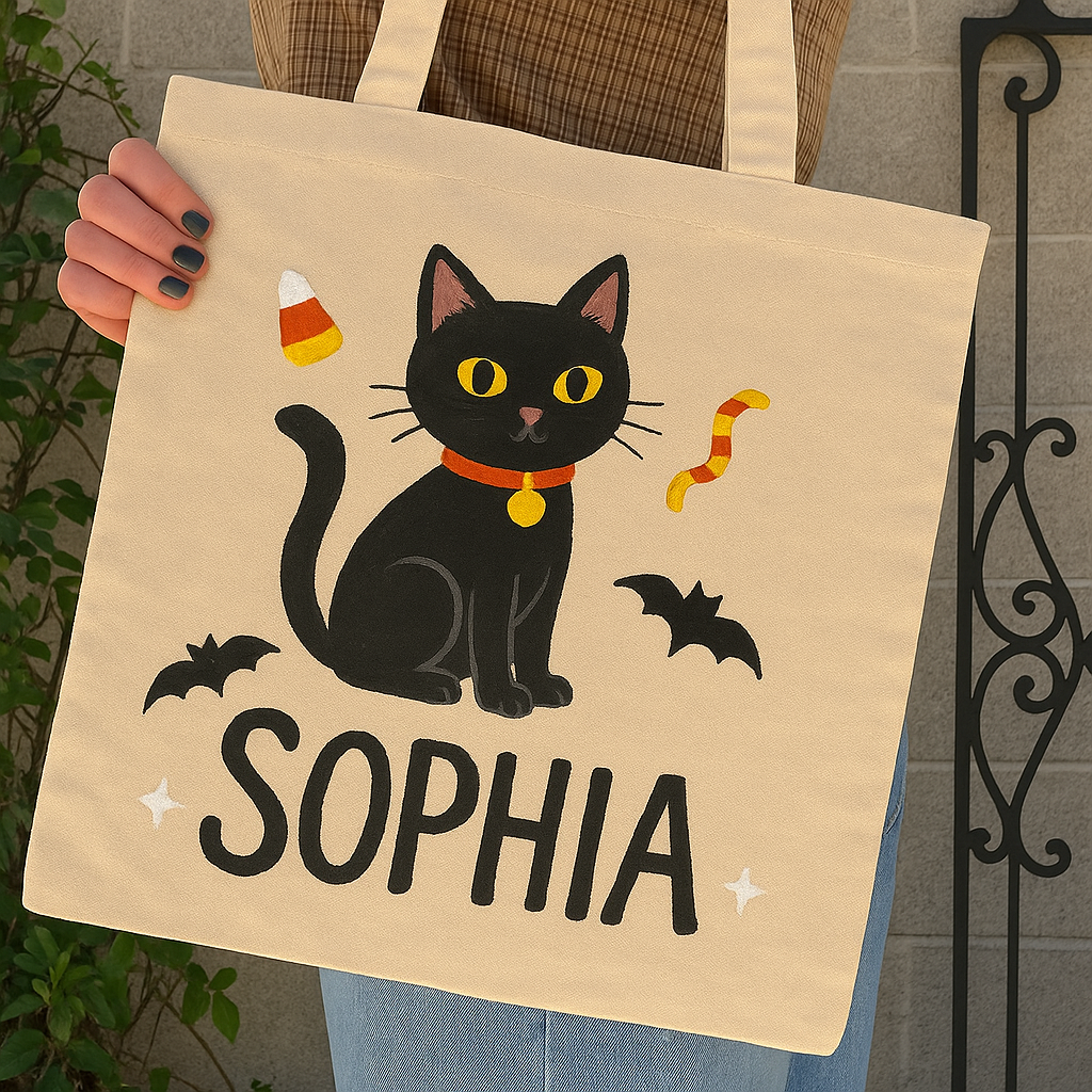 Each tote bag is a large 12″ × 12″ (plus handle) — perfect for collecting candy or showing off your spooky style!