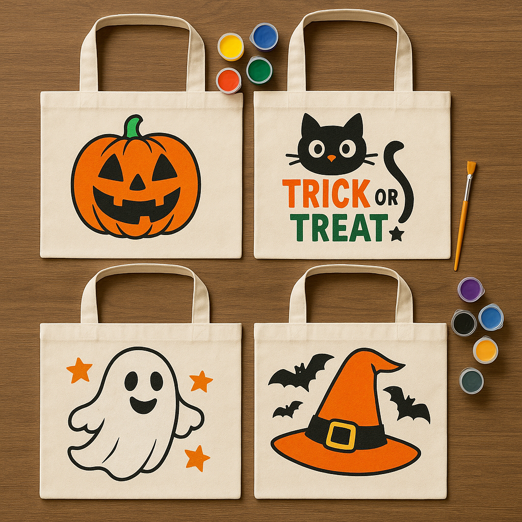 Get ready for some creative Halloween fun! Join us for our Kids and Family Tote Bag Painting Event, where participants can design and paint their very own Trick-or-Treat or Halloween tote bag.