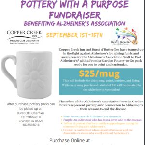 Use of our clay and tools included. Any pieces you choose to keep are priced at $14 per pound of clay and includes two firings and use of glazes. Clay can be recycled back into available clay for any pieces not being kept.